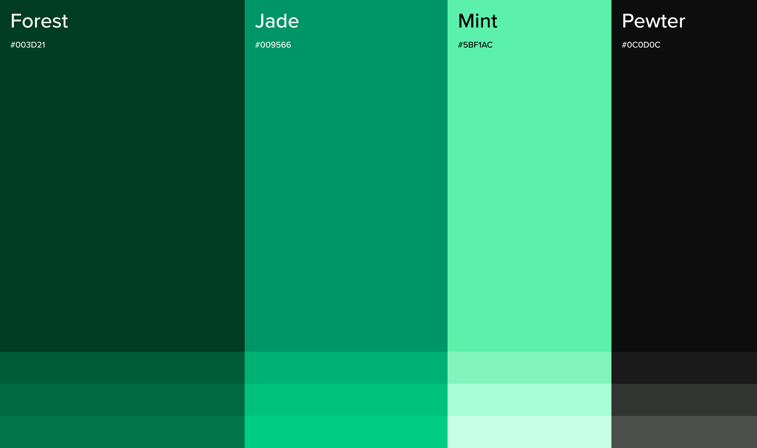 The color palette strikes a balance between modernity and conservatism. Glowing mint signals modernity and innovation, while deeper greens convey trust and stability - supporting the brand’s goal of being both modern and reliable.