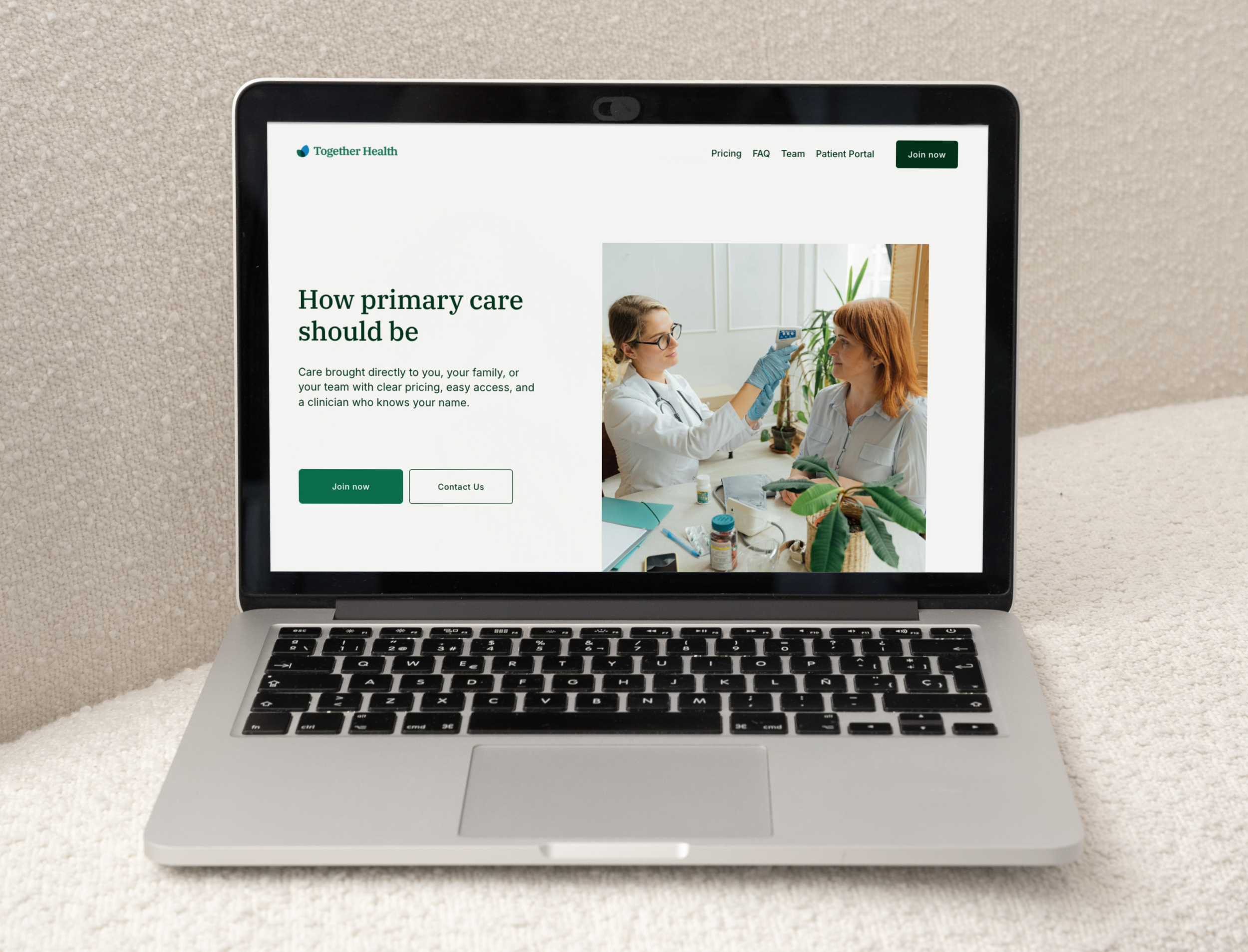 Together Health is a direct primary care practice that makes healthcare feel reliable and human again. By offering longer visits, in-home care, and clear pricing, they give people the kind of attention and transparency that’s often missing in healthcare today. I worked with the founding team to build a brand identity and messaging system that captured this difference. The design emphasizes clarity, trust, and compassion - positioning Together Health as a calm, steady partner for employers and patients alike.
